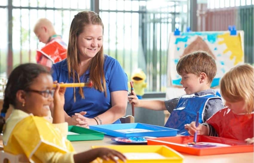 Each school follows its state guidelines for the teacher-child ratio.